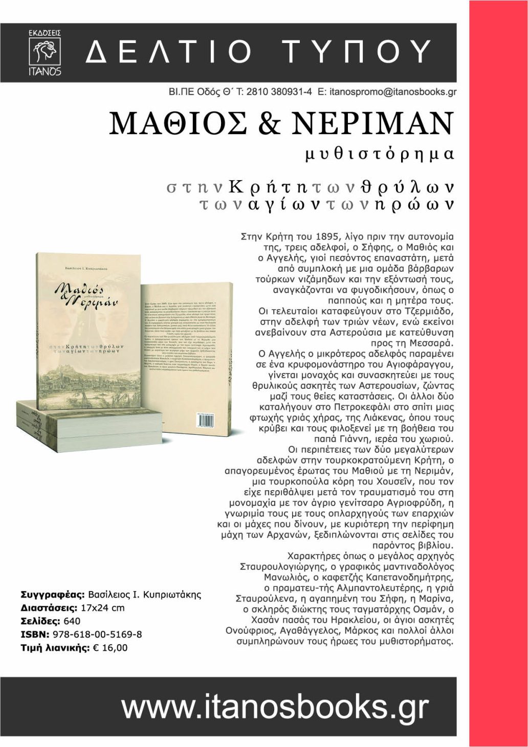 Μην χάσετε το μυθιστόρημα “Μαθιός & Νεριμάν” από τις εκδόσεις Ίτανος