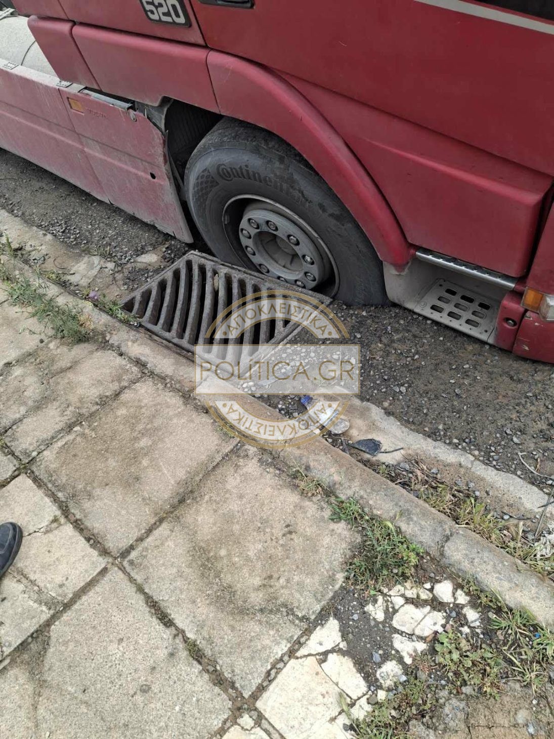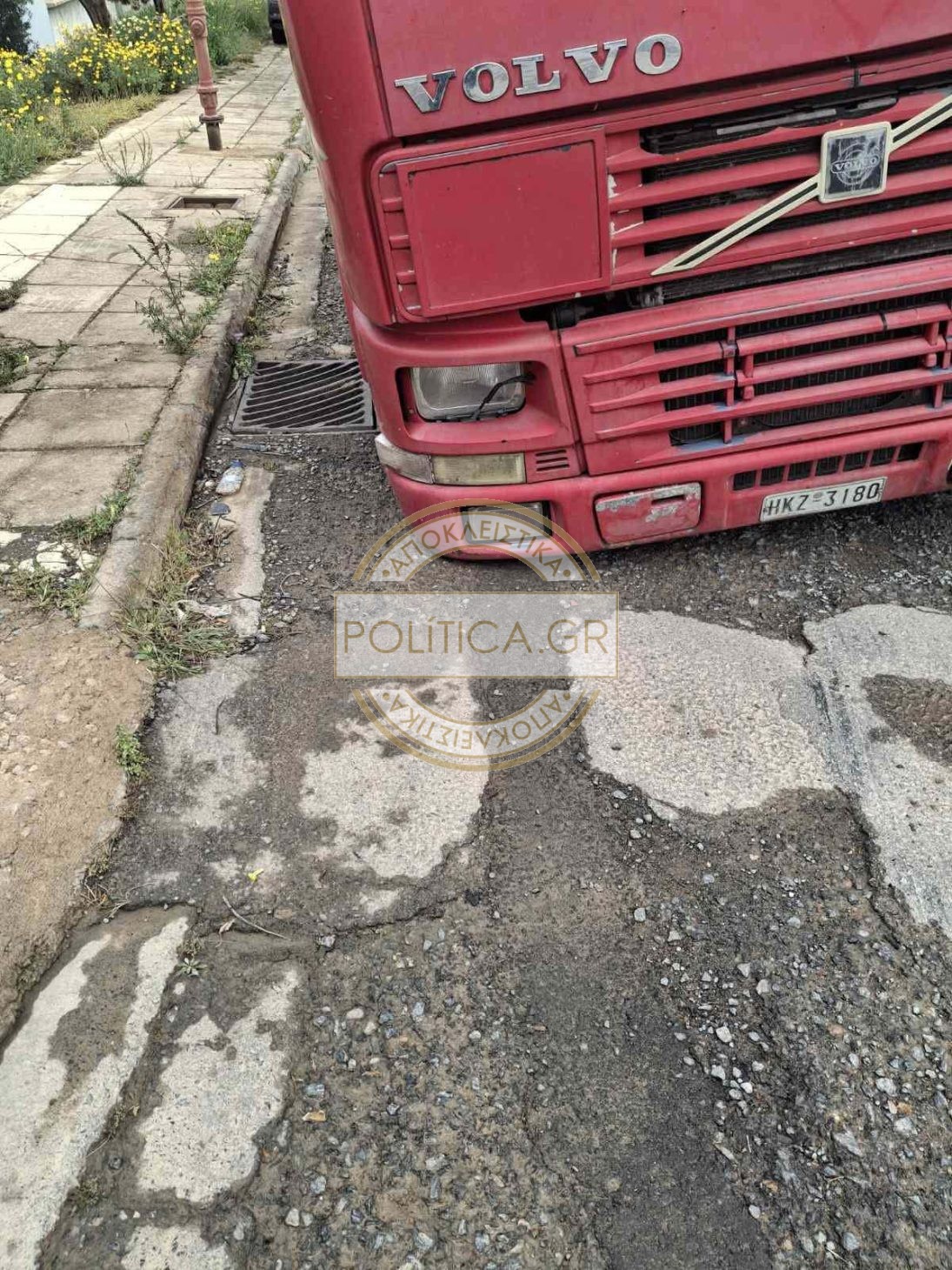 Λόγω της καθίζησης η νταλίκα “βούλιαξε” σε φρεάτιο που υποχώρησε.