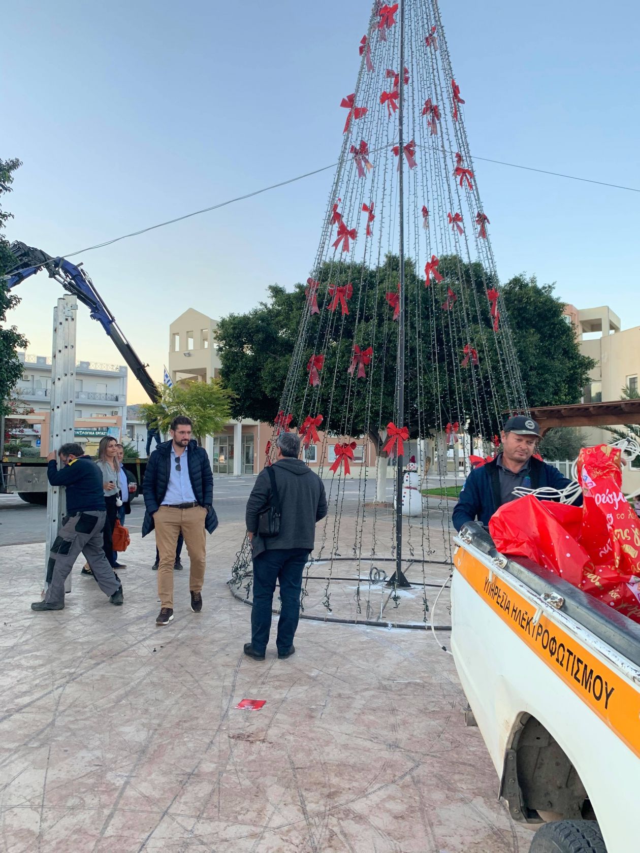 Στην πλατεία βρέθηκε ο Δήμαρχος Μαλεβιζίου Μενέλαος Μποκέας με τους Αντιδημάρχους Χρύσα Λυρώνη, Γιώργο Πετούση, Γρηγόρη Φασουλάκη, τον Πρόεδρο της Κοινότητας Γαζίου Βαγγέλη Παρασύρη και τον εντεταλμένο δημοτικό σύμβουλο Γιώργο Ρεράκη καθώς από νωρίς το πρωί τεχνικά συνεργεία τοποθετούν τον εορταστικό στολισμό. Ειδικές κατασκευές χριστουγεννιάτικης διακόσμησης γέμισαν κάθε γωνιά της πλατείας με την έμφαση να δίνεται σε εικόνες που θα τραβήξουν τα βλέμματα των μικρών παιδιών.