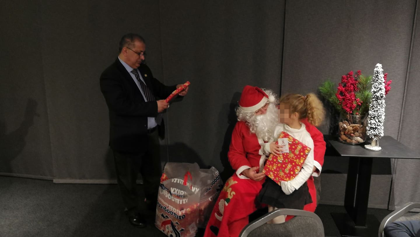 Στην κατάμεστη αίθουσα του ξενοδοχείου Ibis Style, οι Ροταριανοί μαζί με τις οικογένειές τους και φίλους του Ομίλου, αντάλλαξαν ευχές και δώρα για τη νέα χρονιά, ενώ ο Άγιος Βασίλης μοίρασε παιχνίδια και γλυκίσματα σε όλα τα παιδιά.