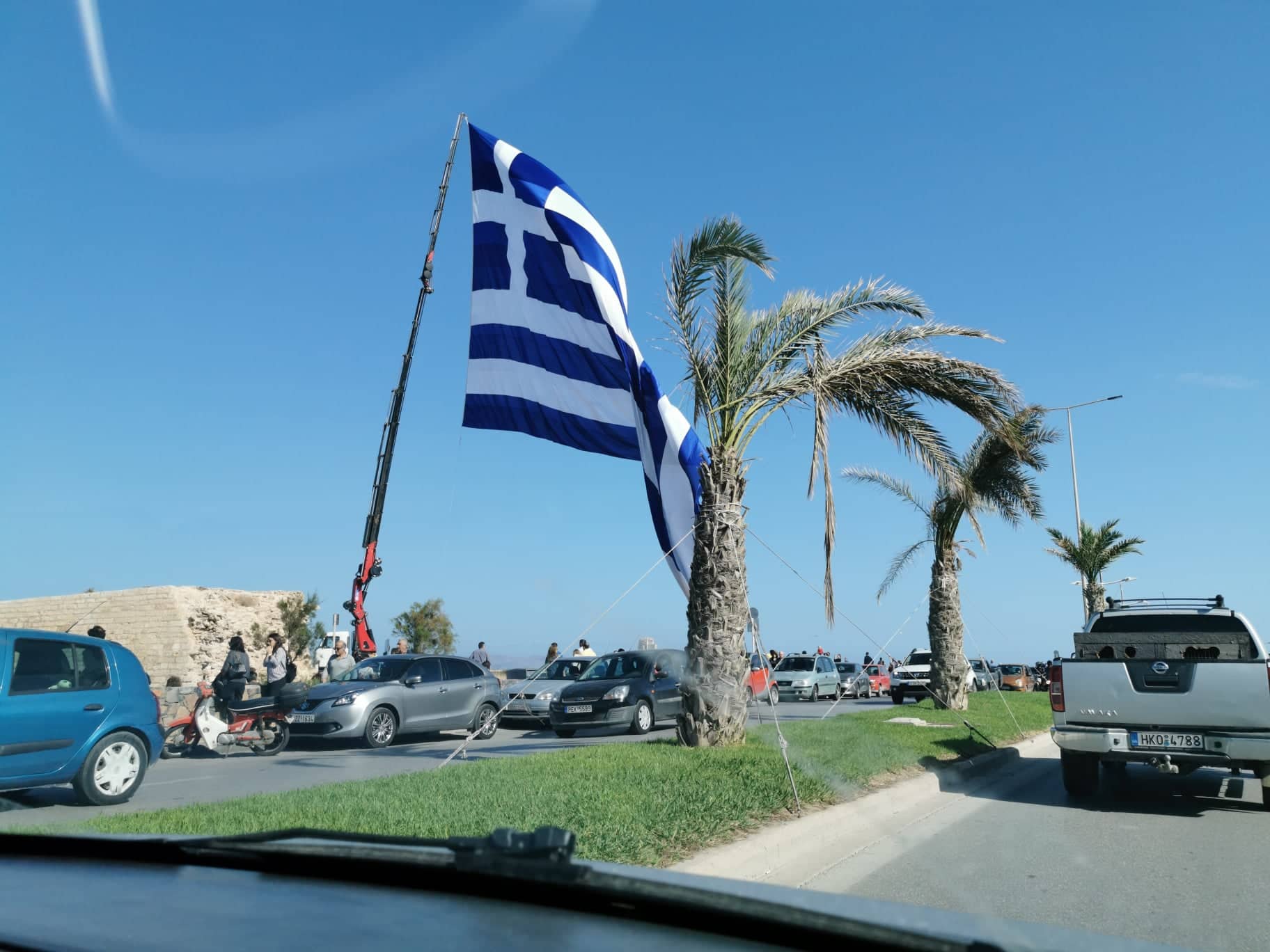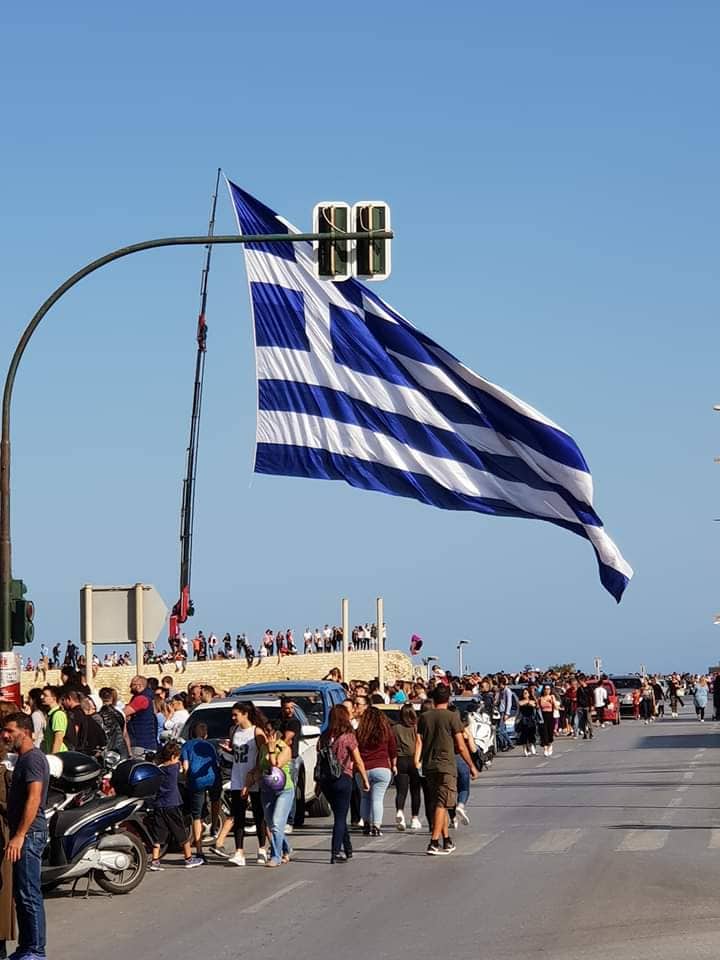 Ο σμηναγός Γεώργιος Παπαδάκης, Ιπτάμενος Επίδειξης της Ομάδας Αεροπορικών Επιδείξεων Μεμονωμένου Αεροσκάφους F-16, πέταξε από την παραλιακή λεωφόρο Ηρακλείου, έως την περιοχή του αεροδρομίου Ηρακλείου, ολοκληρώνοντας με αυτό τον τρόπο της εορταστικές εκδηλώσεις.