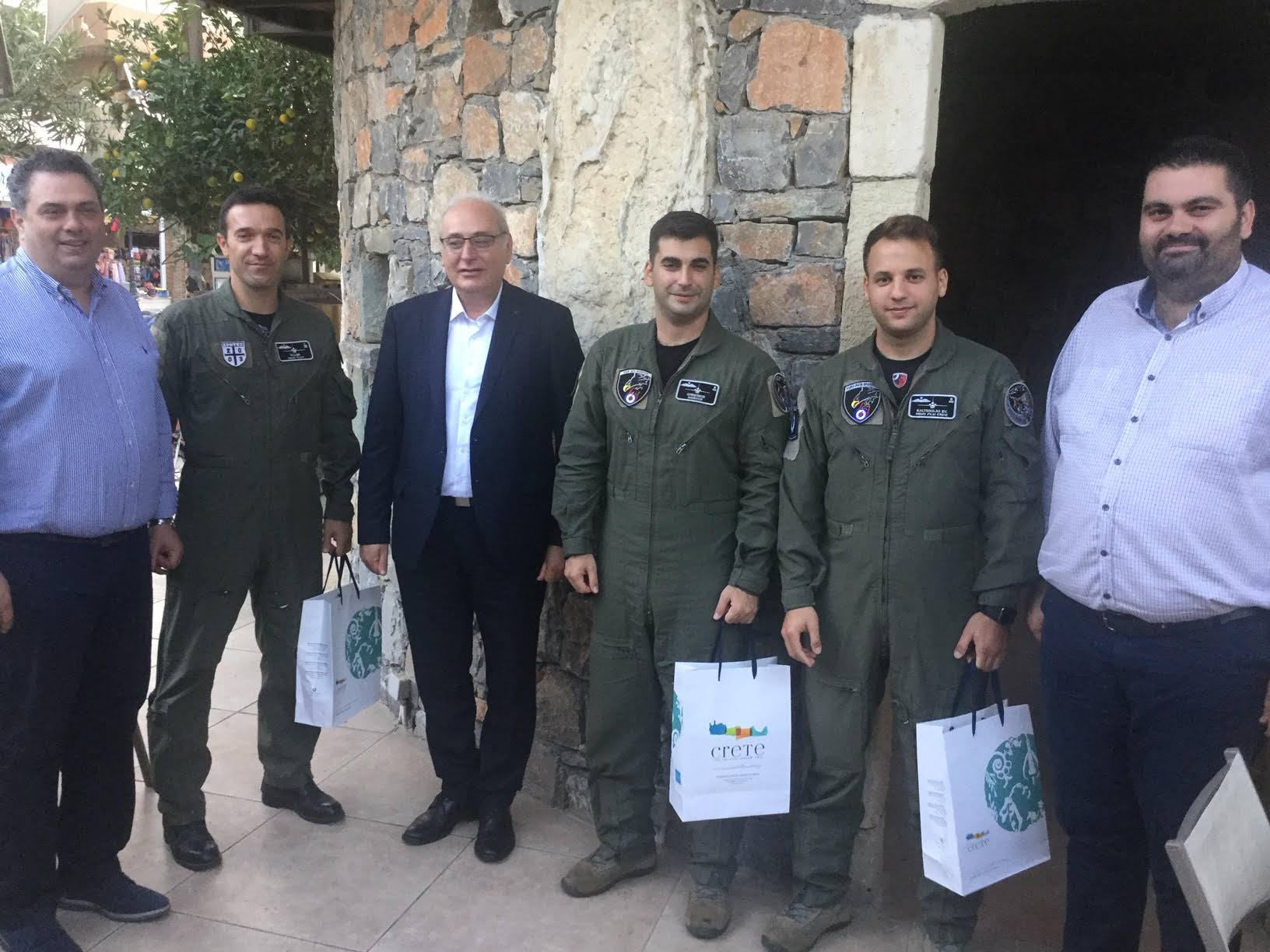 Ο κ Μπαριτάκης νωρίτερα με τα παριστάμενα μέλη του Περιφερειακού συμβουλίου Γιώργο Πιτσούλη, Κώστα Φασουλάκη, Σταύρο Τζεδάκη, μαζί με τον αντισμήναρχο ε.α. Γιώργο Κωστάκη, τους παραβρισκόμενους πολίτες, είχαν συνομιλία με πιλότους της ομάδας “Ζευς” τον επισμηναγό Γιώργο Άνδρουλάκη, τους υποσμηναγούς Μανόλη Χρηστάκη, Βαγγέλη Καλτσούλα, όπου ενημερώθηκαν για την λειτουργία της ομάδας και τα χαρακτηριστικά της επίδειξης όπως και άλλα χρήσιμα στοιχεία για το F-16 και το αξιόμαχο της Πολεμικής αεροπορίας. Στην συνέχεια η Περιφέρεια Κρήτης παρέθεσε γεύμα στους αξιωματικούς πιλότους, όπου παράλληλα τους δόθηκαν εθιμοτυπικά δώρα.