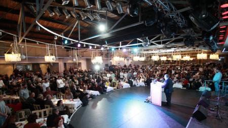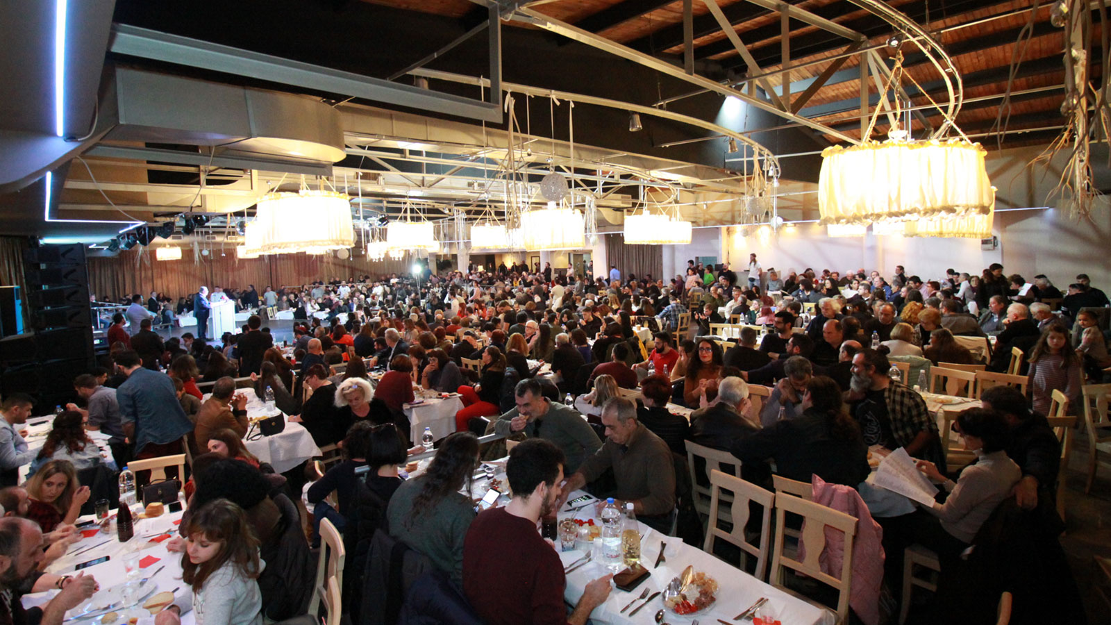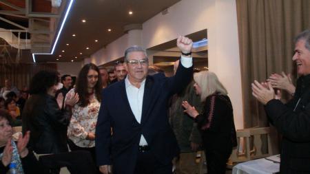 «Ένας αιώνας αγώνας και θυσία, το ΚΚΕ στην πρωτοπορία», ήταν το σύνθημα που «υποδέχθηκε» τον ΓΓ της ΚΕ στον χώρο της συνεστίασης.
