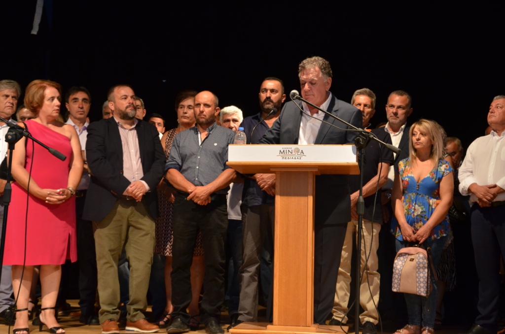 Σε μία σεμνή και με υψηλό συμβολισμό τελετή, παρουσία εκλεγμένων, εκπρόσωπων τοπικών αρχών και φορέων αλλά και πλήθους πολιτών, πραγματοποιήθηκε την Παρασκευή 30 Αυγούστου 2019 η τελετή ορκωμοσίας της νέας Δημοτικής Αρχής – του Δημάρχου, των Δημοτικών Συμβούλων και των Προέδρων και Συμβούλων των Κοινοτήτων – του Δήμου Μινώα Πεδιάδας, την οποία τέλεσε ο σεβασμιότατος Μητροπολίτης Αρκαλοχωρίου, Καστελλίου και Βιάννου κ. Ανδρέας, παρόντος του Αρχιεπισκόπου Κρήτης κ.κ. Ειρηναίου .