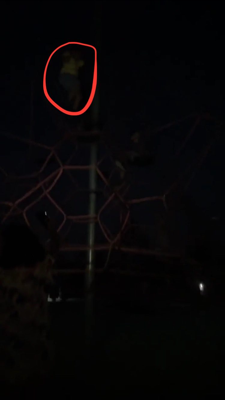 Τα παιδιά δεν σταματούν να παίζουν. Δεν ξέρουν από δικαιολογίες, δεν καταλαβαίνουν από «γραφειοκρατικά προβλήματα». Σκαρφαλώνουν, τρέχουν στο κυνηγητό, χοροπηδούν στο τραμπολίνο,Αναρριχώνται σε παιχνίδια-δίχτυα με ύψος 2,5 μέτρων(Φωτ. με το παιδί σε κόκκινη σήμανση).Μόνο που όλα αυτά τα κάνουν κρατώντας φακούς απο τα κινητά των γονιών τους. Με το ένα χέρι προσπαθούν να ισορροπήσουν, με το άλλο να φωτίσουν το σκοτάδι. Ένα παιχνίδι που θυμίζει περισσότερο δοκιμασία επιβίωσης παρά παιδική ξεγνοιασιά.