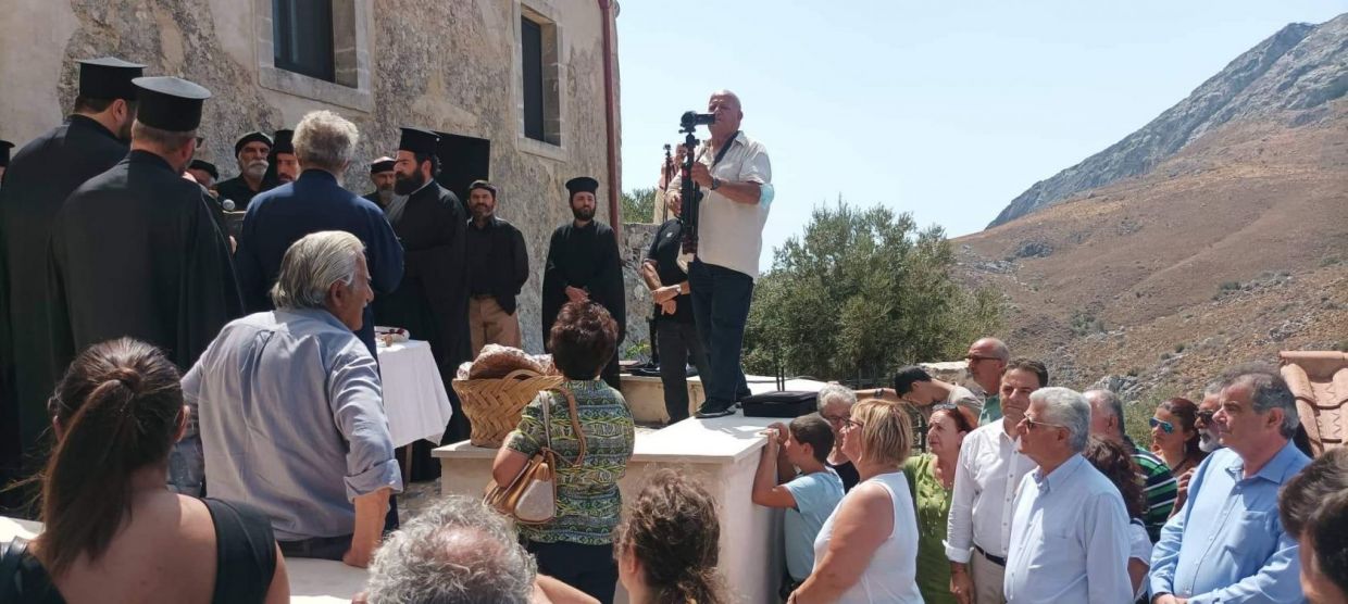 Ο Περιφερειάρχης Κρήτης Σταύρος Αρναουτάκης στο χαιρετισμό του αναφέρθηκε στην ιστορικότητα του Μοναστηριού, στην πρωτοβουλία του εφημέριου π. Ιωάννη Βάθη, των τοπικών φορέων και στην πολιτική βούληση της Περιφέρειας να στηρίξει το έργο διάσωσης και ανάδειξης των ισχυρών ψηφίδων του πολιτισμού μας, της ιστορίας, των Εκκλησιαστικών και λαογραφικών παραδόσεων μας.