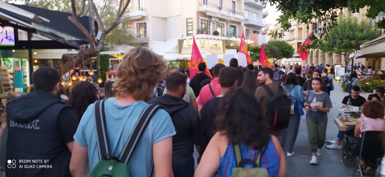 “Νέοι και νέες, ένωσαν την φωνή τους με τους δεκάδες χιλιάδες διαδηλωτές σε όλο τον κόσμο.Με παλμό και πολυμορφία ακούστηκαν στους δρόμους των πόλων συνθήματα όπως «Κρίσεις, φτώχεια, ρατσισμός αυτός είναι ο καπιταλισμός, Ο καπιταλισμός μας φέρνει ασφυξία, οργάνωση και αγώνας για άλλη εξουσία, Του καπιταλισμού η δημοκρατία, είναι για τους λαούς καταστολή και βία ». Επίσης, μέσα από τα πλακάτ αναδείχτηκε ακόμα μια φορά «Να κλείσει η βάση της Σούδας, καμία συμμετοχή στις ιμπεριαλιστικές επεμβάσεις.»
