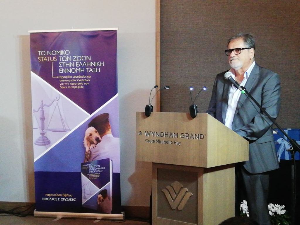 Η παρουσίαση του βιβλίου «Το νομικό status των ζώων στην Ελληνική έννομη τάξη: Εγχειρίδιο νομοθεσίας και αστυνομικών ενεργειών για την προστασία των ζώων συντροφιάς» από τον συγγραφέα Αστυνομικό Διευθυντή Χρυσάκη Νικόλαο πραγματοποιήθηκε χθες, Παρασκευή 11 Οκτωβρίου 2019 στον Άγιο Νικόλαο Λασιθίου.
