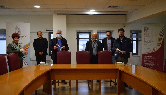 Ο Πρύτανης του Πολυτεχνείου Κρήτης, Καθηγητής Ευάγγελος Διαμαντόπουλος, ο Κοσμήτορας της Σχολής Μηχανικών Παραγωγής και Διοίκησης Καθηγητής Νικόλαος Τσουρβελούδης και ο Επίκουρος Καθηγητής της Σχολής Αρχιτεκτόνων Μηχανικών Αλέξανδρος Βαζάκας, παρέδωσαν: