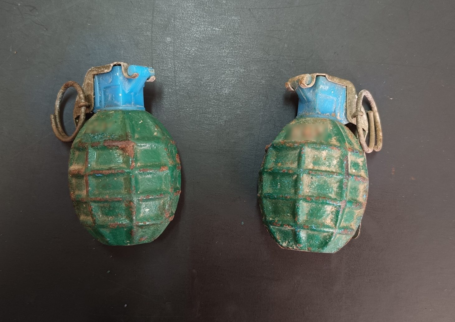 Παράλληλα στην κατοχή του 47χρονου που συνελήφθη βρέθηκαν και δύο χειρομβομβίδες οι οποίες κατασχέθηκαν.