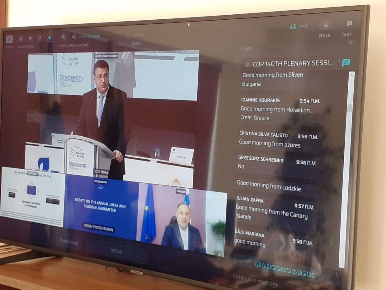 Ο Πρόεδρος της Περιφερειακής Ένωσης Δήμων Κρήτης και Τακτικό Μέλος της Επιτροπής των Ευρωπαϊκών Περιφερειών κ. Γιάννης Κουράκης συμμετείχε στη σύνοδο μέσω τηλεδιάσκεψης.