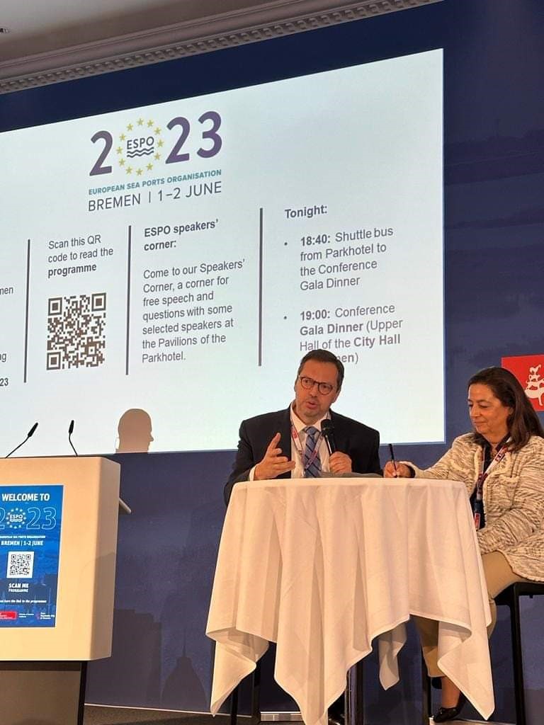 Στο συνέδριο της ESPO (European Sea Ports Organisation),αναπτύχθηκε διεξοδικά το νέο ασταθές περιβάλλον στο οποίο καλούνται να δραστηριοποιηθούν οι ευρωπαϊκοί λιμένες ως συνέπεια των διαφόρων κρίσεων. Εκτός από την κλιματική κρίση, το νέο γεωπολιτικό περιβάλλον που προκλήθηκε από τη ρωσική εισβολή στην Ουκρανία, άλλαξε το ενεργειακό τοπίο στην Ευρώπη. Ο πληθωρισμός και οι ελλείψεις στην αγορά εργασία αποτελούν τους σημαντικούς μακροοικονομικούς παράγοντες που επιδρούν άμεσα στις λιμενικές δραστηριότητες. Μέσα σε αυτό το ταραχώδες τοπίο οι Ευρωπαϊκοί λιμένες καλούνται να υλοποιήσουν τον πράσινο μετασχηματισμό τους και να μετατραπούν σε ενεργειακούς κόμβους με έμφαση στην κυκλική οικονομία, τη διαχείριση της ροής πληροφοριών και τη βιώσιμη ανάπτυξη.