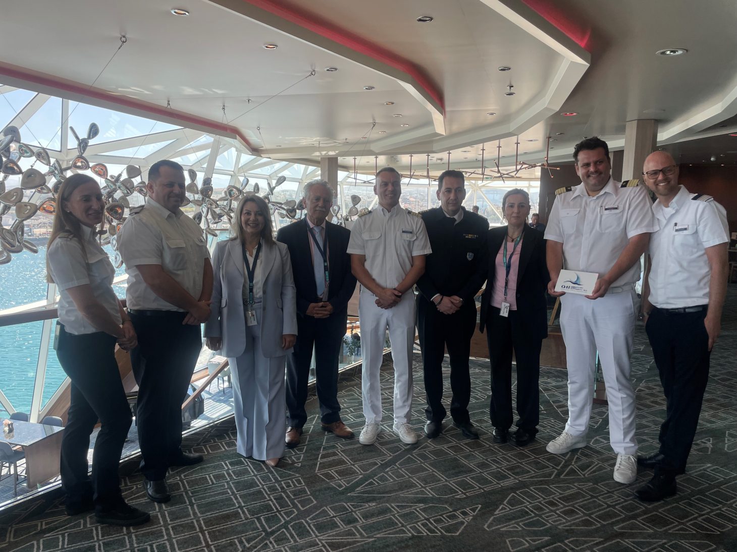 Ο Πρόεδρος του Οργανισμού Λιμένος Ηρακλείου κ. Ιωάννης Βαρδαβάς στο πλαίσιο της εθιμοτυπικής επίσκεψης, μετέβη και στα δύο κρουαζιερόπλοια συνοδευόμενος από τον Λιμενάρχη του Κεντρικού Λιμεναρχείου Ηρακλείου κ. Νικόλαο Τσομπάνη από την Υπεύθυνη του Τομέα Κρουαζιέρας του ΟΛΗ κ. Κυριακή Καμπανά και από την Ειδική Σύμβουλο του ΟΛΗ κ. Ελένη Τσαντηράκη.