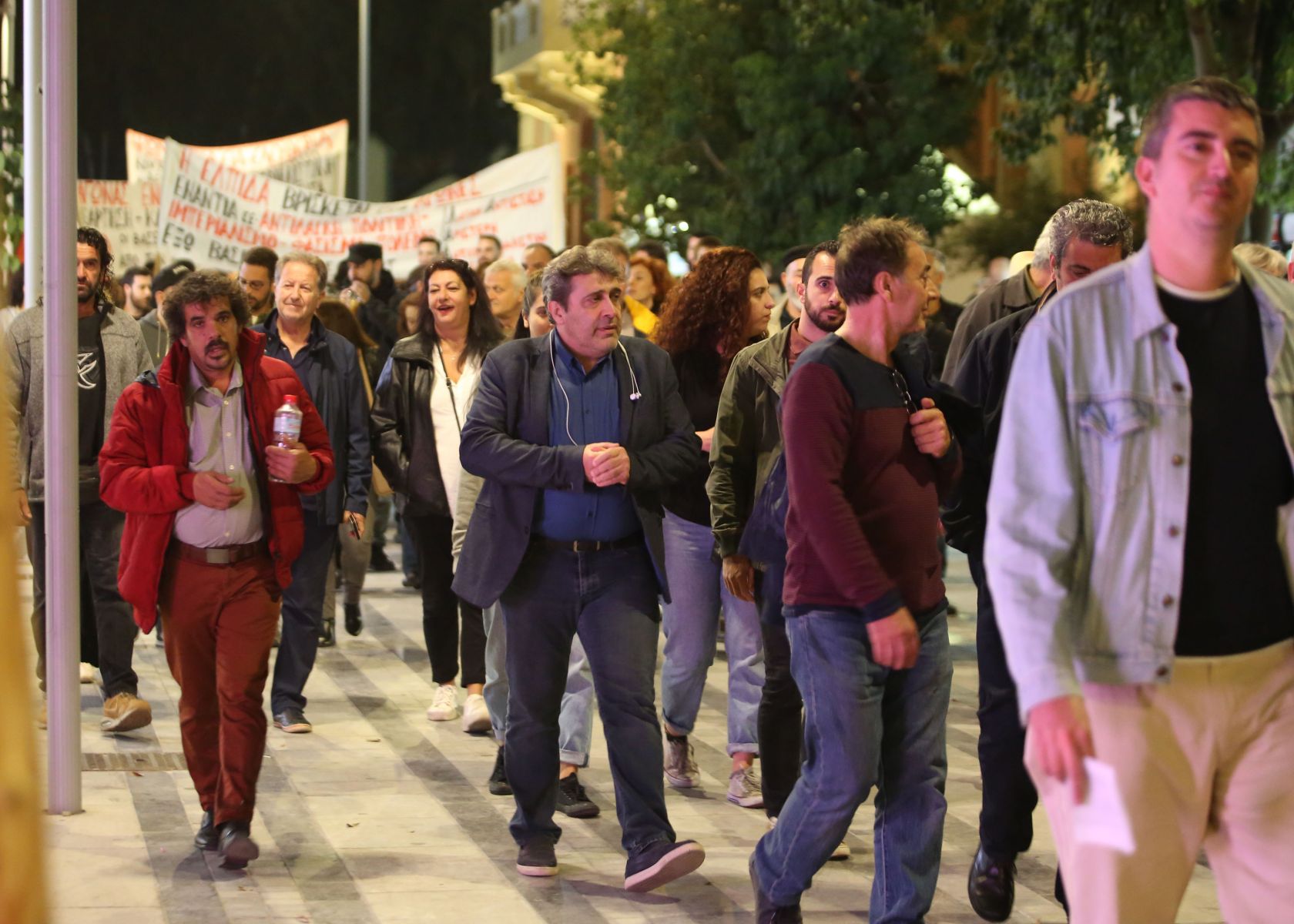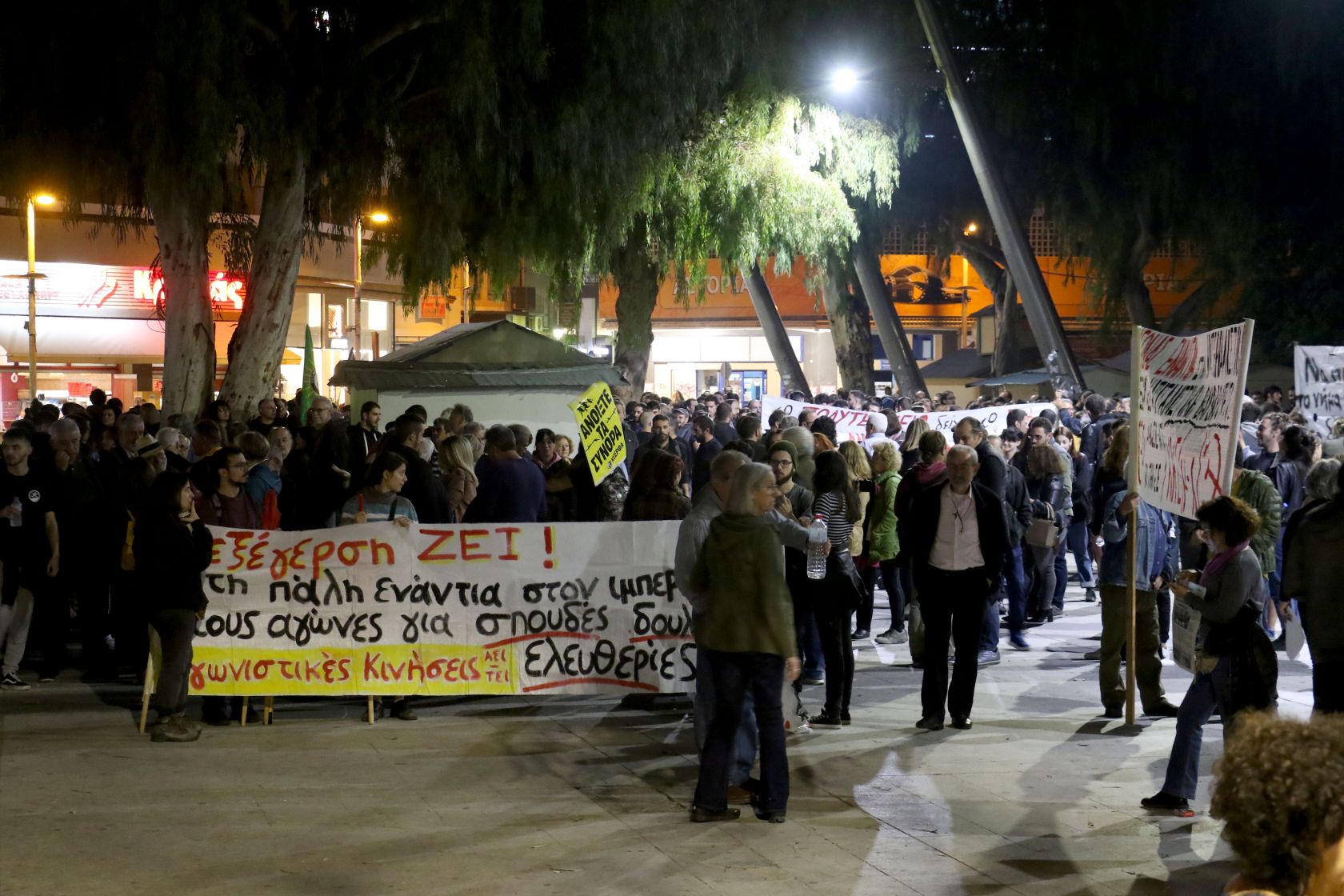 Εκατοντάδες πολίτες διαδηλώνουν στο κέντρο των Χανίων προκειμένου να τιμήσουν την επέτειο του Πολυτεχνείου.