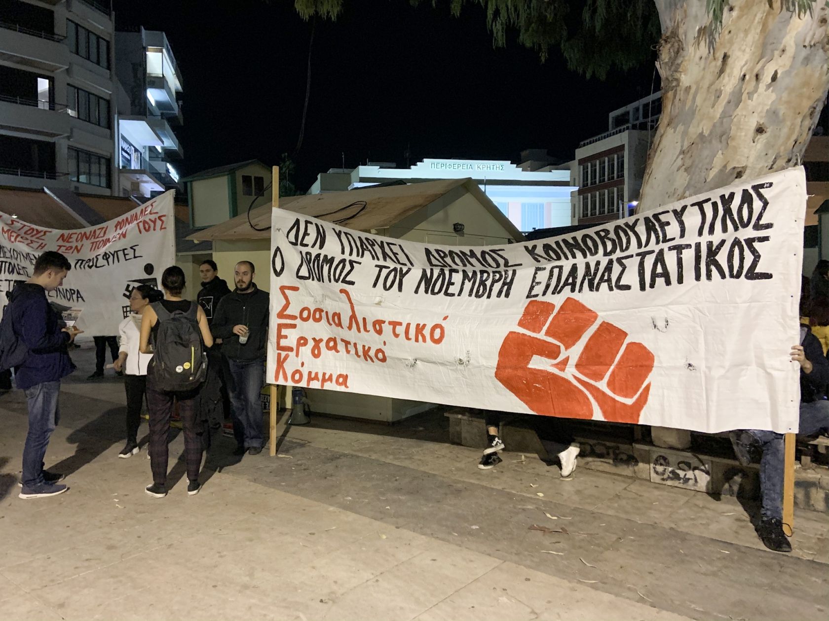 Στα Χανιά, η πορεία για την επέτειο του Πολυτεχνείου, ξεκίνησε λίγο πριν τις 19.00 το απόγευμα, με τους φοιτητές στην κεφαλή της πορείας.
