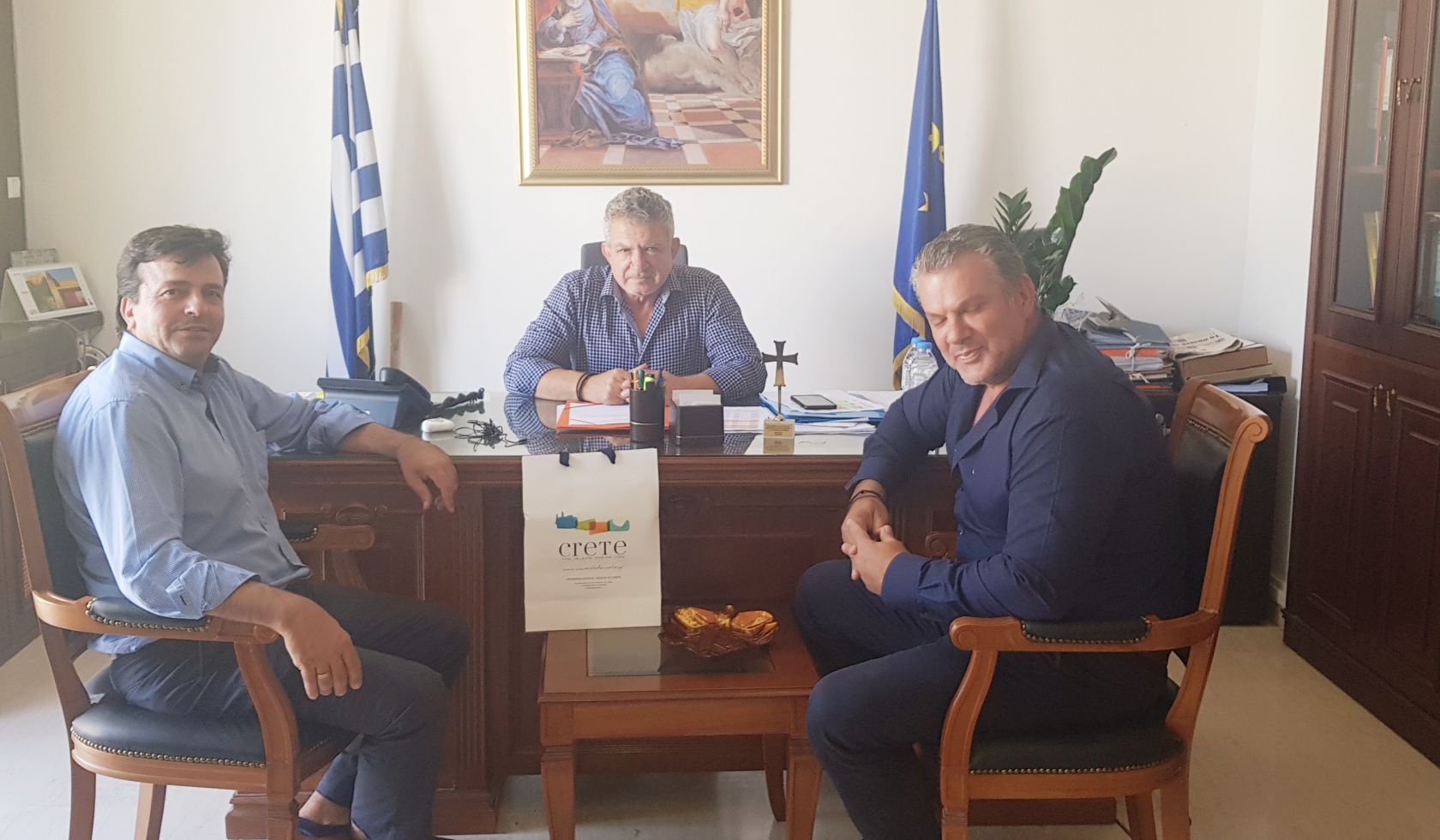 Διαδοχικές συναντήσεις είχε σήμερα ο Αντιπεριφερειάρχης Ηρακλείου Νίκος Συριγωνάκης με τον Σεβασμιότατο Μητροπολίτη Γορτύνης και Αρκαδίας κ. Μακάριο στο Μητροπολιτικό Μέγαρο, και τους Δημάρχους Μαλεβιζίου Μενέλαο Μποκέα, Γόρτυνας Λευτέρη Κοκολάκη παρουσία του επικεφαλής της παράταξης «Μεγάλη Γόρτυνα» Μιχάλη Κοκολάκη και Φαιστού Γρηγόρη Νικολιδάκη.