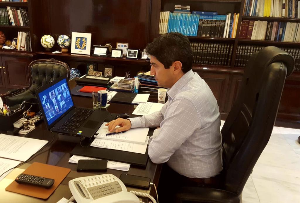 Τηλεδιάσκεψη με θέμα την διαχείριση των επιπτώσεων της πανδημίας του κορονοϊού για τον κλάδο του τουρισμού στο Ηράκλειο και την επανεκκίνηση του τουρισμού όταν αρθούν τα μέτρα περιορισμού, είχε σήμερα ο Υφυπουργός Πολιτισμού και Αθλητισμού και Βουλευτής Ηρακλείου κ. Λευτέρης Αυγενάκης.