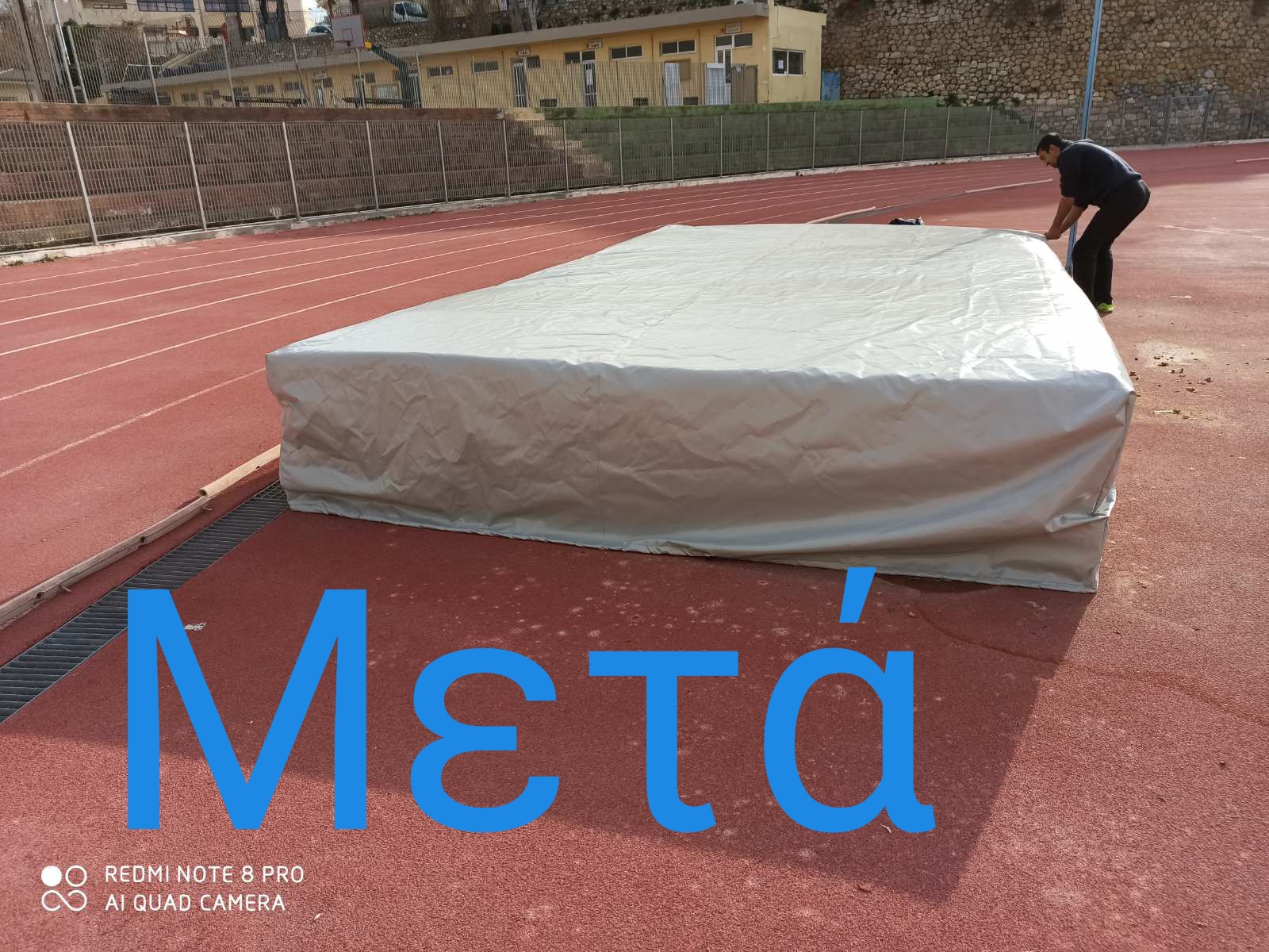 “Το προηγούμενο στρώμα για το αγώνισμα άλμα εις ύψος, εκτός ότι ήταν ακατάλληλο για προπόνηση ήταν και εστία μικροβίων. Έτσι λοιπόν από σήμερα οι αθλητές μας θα μπορούν να προπονούνται όπως τους αξίζει. Και συνεχίζουμε!”