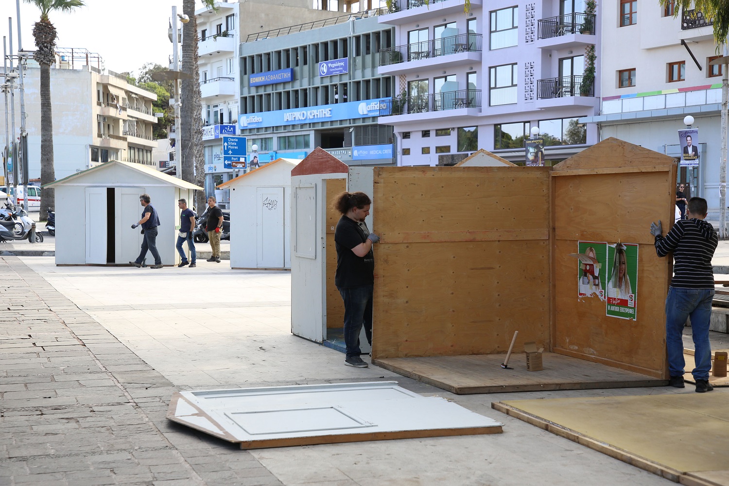 Ξεκίνησε τα τελευταία 24ωρα στην Πλατεία Ελευθερίας το στήσιμο του «Χριστουγεννιάτικου Κάστρου 2019». Η Δημοτική Κοινωφελής Επιχείρηση Ηρακλείου έχει ήδη αρχίσει να διαμορφώνει την κεντρική πλατεία της πόλης σε ένα…μικρό, πολύχρωμο, Χριστουγεννιάτικο χωριό.