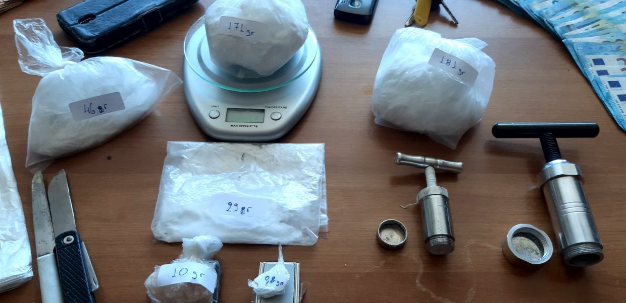 Βρέθηκαν και κατασχέθηκαν πάνω από 430 γραμμάρια κοκαΐνης, το χρηματικό ποσό των 12.180 ευρώ και μια δίκυκλη μοτοσυκλέτα ως μέσο διακίνησης ναρκωτικών ουσιών.