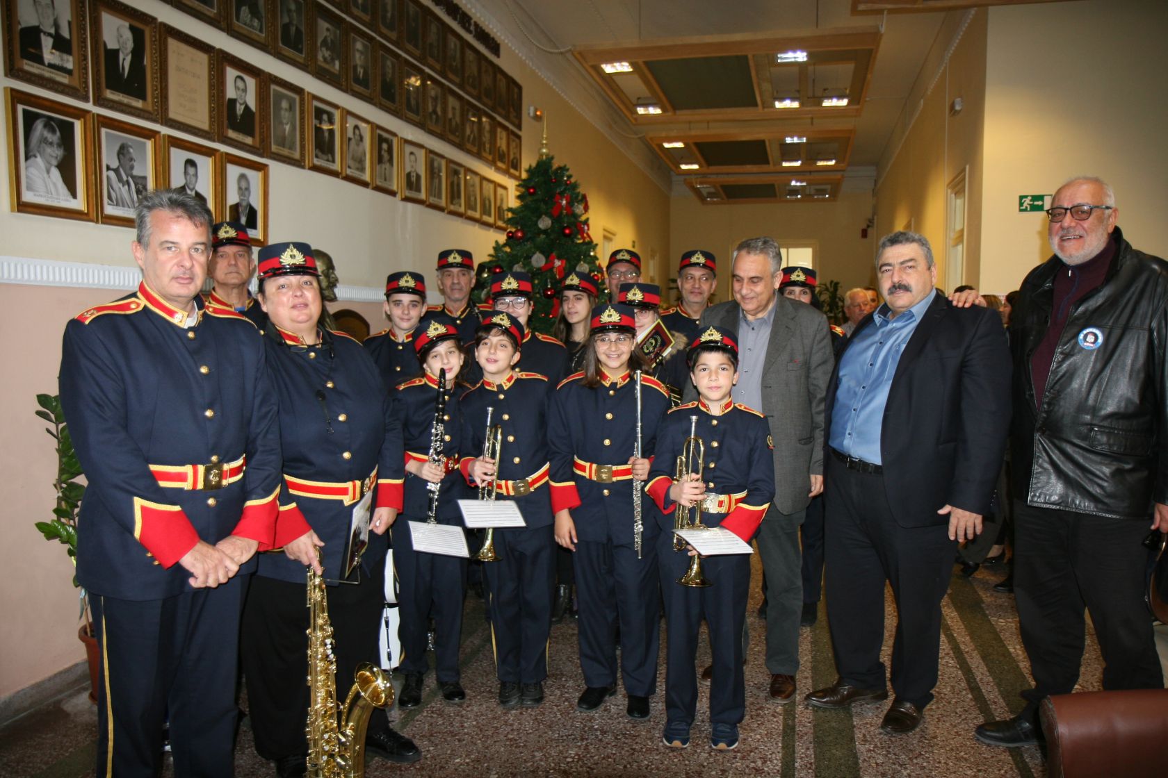 Στο πλαίσιο των εορταστικών επισκέψεων στην Περιφερειακή Ενότητα Χανίων, ο Αντιπεριφερειάρχης Χανίων, κ. Νίκος Καλογερής, υποδέχτηκε σήμερα, Τρίτη 24 Δεκεμβρίου 2019, τους μεγάλους και μικρούς μουσικούς της Φιλαρμονικής του Δήμου Χανίων, οι οποίοι απέδωσαν τα Κάλαντα των Χριστουγέννων και άλλες εορταστικές μελωδίες υπό τη Διεύθυνση του Αρχιμουσικού κ. Παύλου Μπαïλάκη.