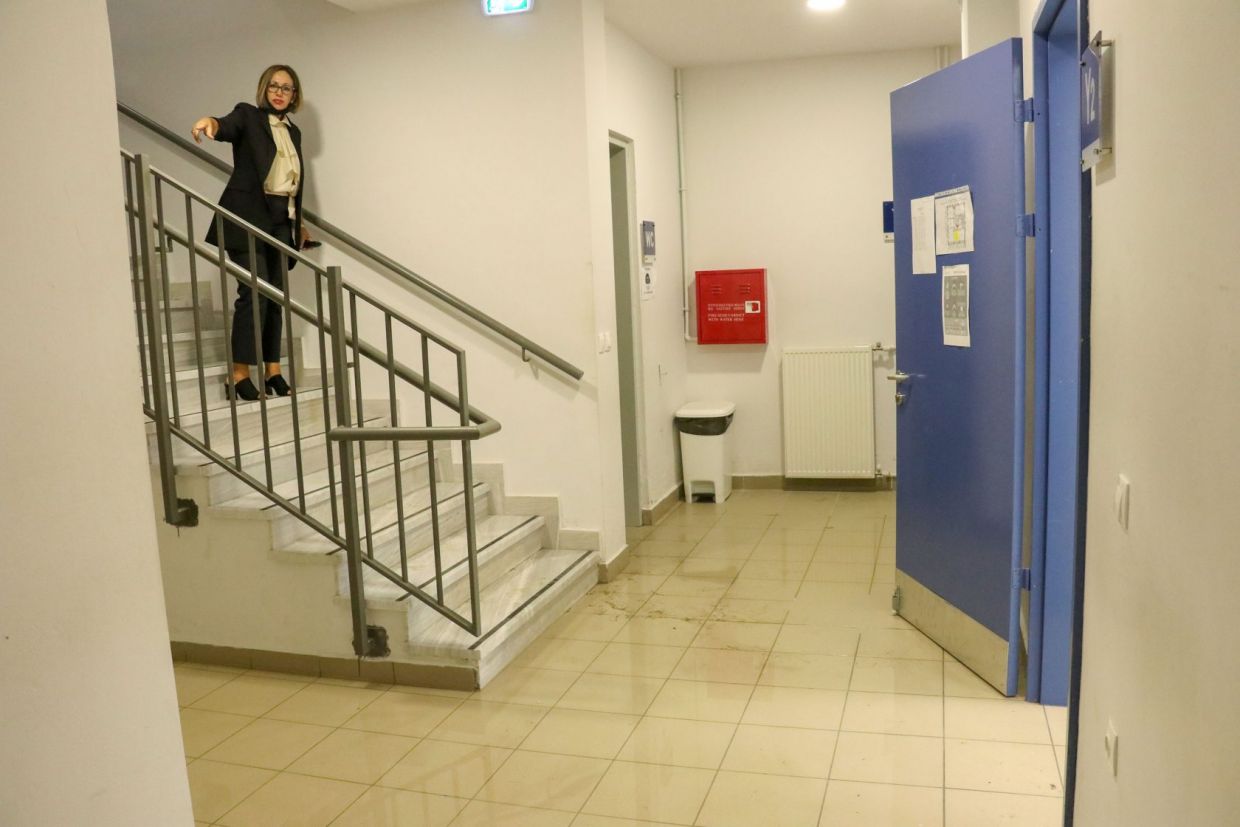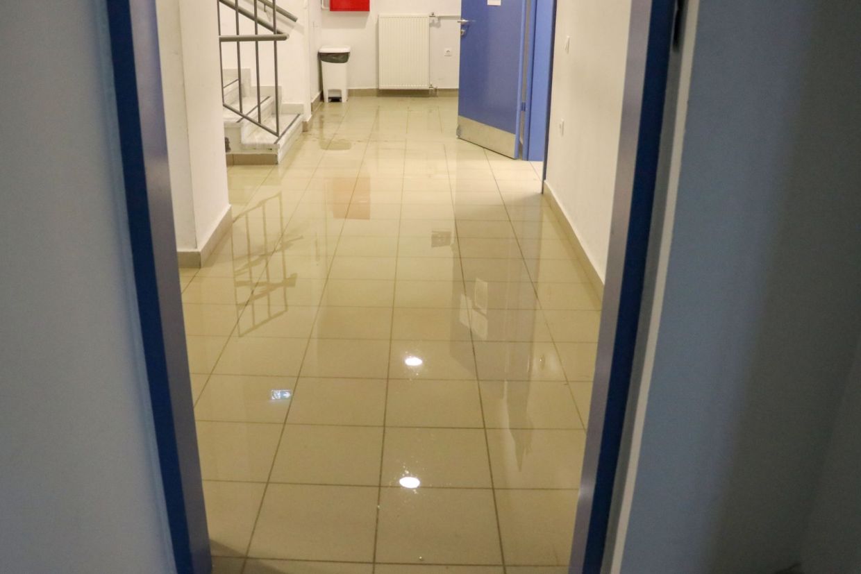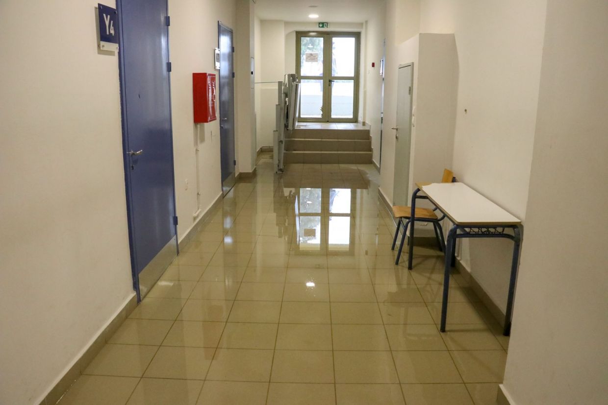 Ολόκληρη λίμνη στις υπόγειες αίθουσες του Καπετανάκειου αντίκρισαν, οι μαθητές πηγαίνοντας στο σχολείο για μάθημα, το πρωί της Τρίτης.