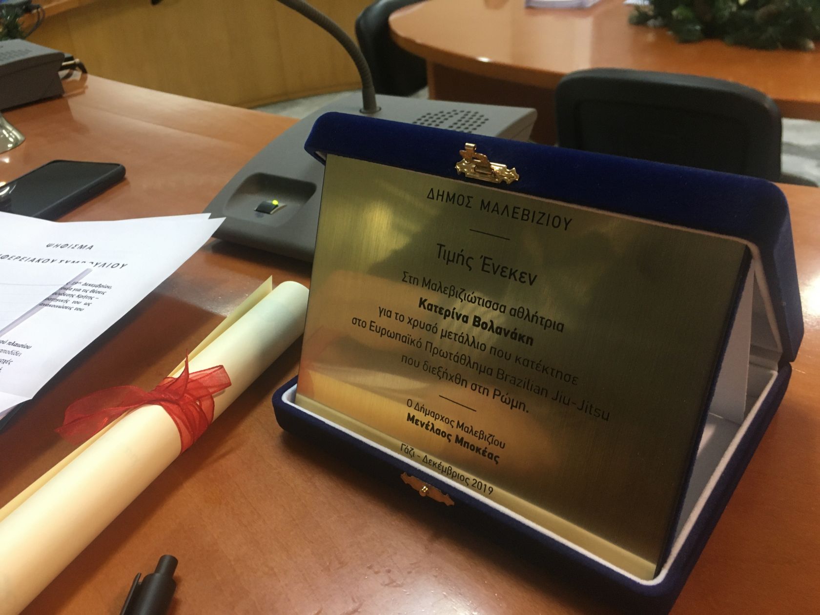 Η Κατερίνα Βολανάκη κατέκτησε το χρυσό μετάλλιο στο πανευρωπαϊκό πρωτάθλημα Jiou Jitsou που πραγματοποιήθηκε πρόσφατα στη Ρώμη. Στο πλαίσιο αυτό, ο Δήμαρχος Μαλεβιζίου Μενέλαος Μποκέας της απένειμε τιμητική πλακέτα για τη σημαντική της διάκριση.