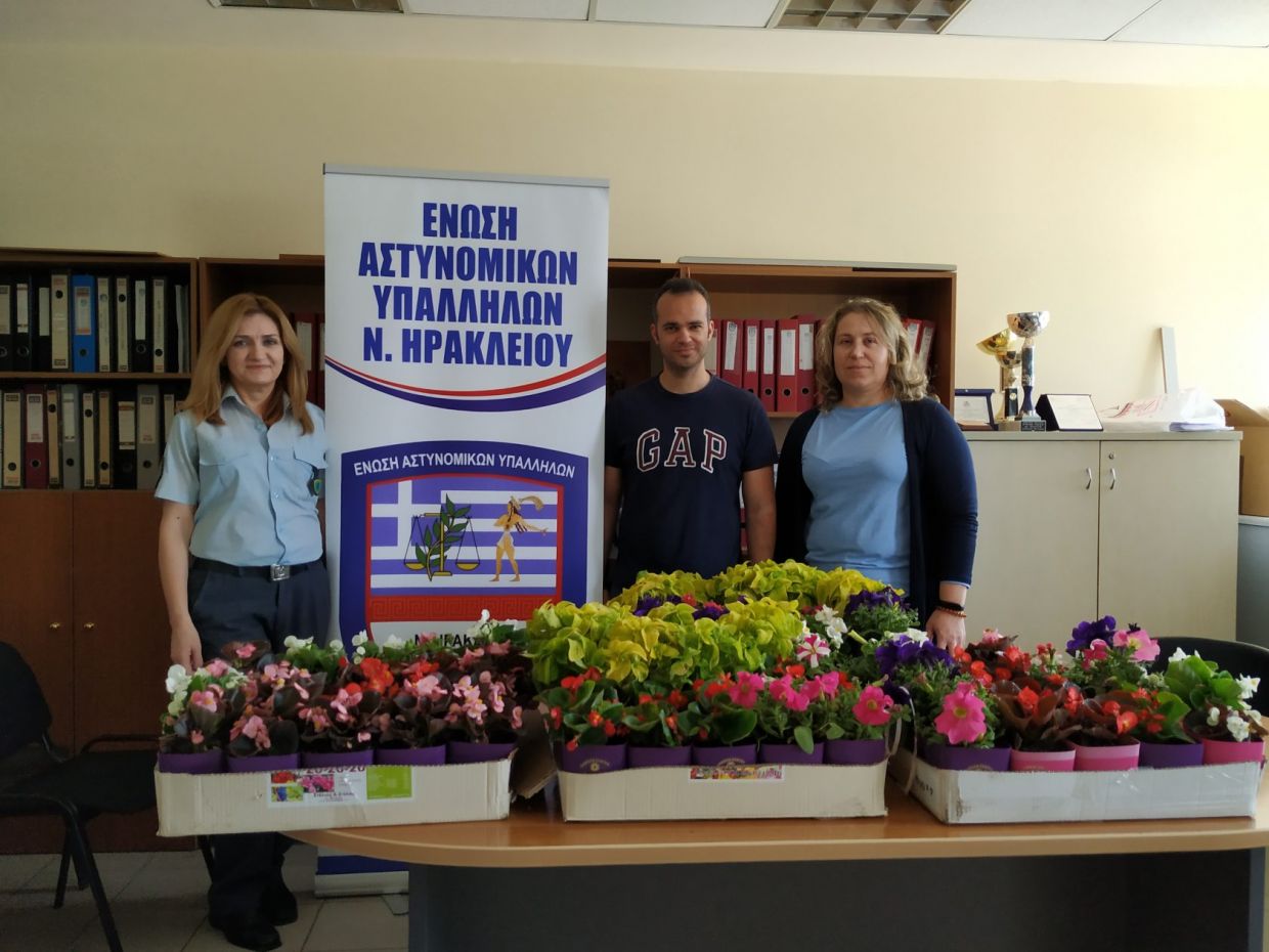 “H Γυναίκα Αστυνομικός έχει πλέον ιδιαιτέρως ουσιαστικό και πρωταγωνιστικό ρόλο στις δράσεις της Ελληνικής Αστυνομίας. Η Ένωση Αστυνομικών Υπαλλήλων Ν. Ηρακλείου και η Γραμματεία Γυναικών της, με την ευκαιρία της Παγκόσμιας Ημέρας της Μητέρας , τιμάει την ΜΗΤΕΡΑ Αστυνομικό που καλείται να ανταπεξέλθει παράλληλα και στους δύο απαιτητικούς αυτούς ρόλους, προσφέροντας σε κάθε μία ένα καλλωπιστικό φυτό.