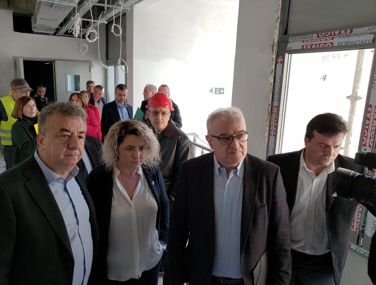 Το εμβληματικό έργο για τη δημόσια υγεία του νησιού επισκέφθηκαν σήμερα ο Περιφερειάρχης Κρήτης Σταύρος Αρναουτάκης, ο Αντιπεριφερειάρχης Υγείας Λάμπρος Βαμβακάς, ο Αντιπεριφερειάρχης Ηρακλείου Νίκος Συριγωνάκης, η διοικήτρια της 7ης ΥΠΕ Κρήτης Λένα Μπορμπουδάκη, ο υποδιοικητής Δημήτρης Αγαπίου, η προϊσταμένη της ειδικής υπηρεσίας διαχείρισης Περιφέρειας Κρήτης Μαρία Κασωτάκη, ενώ παρόντες ήταν ο διοικητής του νοσοκομείου Κώστας Τερζάκης, η αναπληρώτρια Ελευθερία Κωστάκη, η διευθύντρια τεχνικών υπηρεσιών του νοσοκομείου Χρυσούλα Πουλινάκη, υπηρεσιακά στελέχη και οι επιβλέποντες του έργου που ενημέρωσαν για την εξέλιξη του.