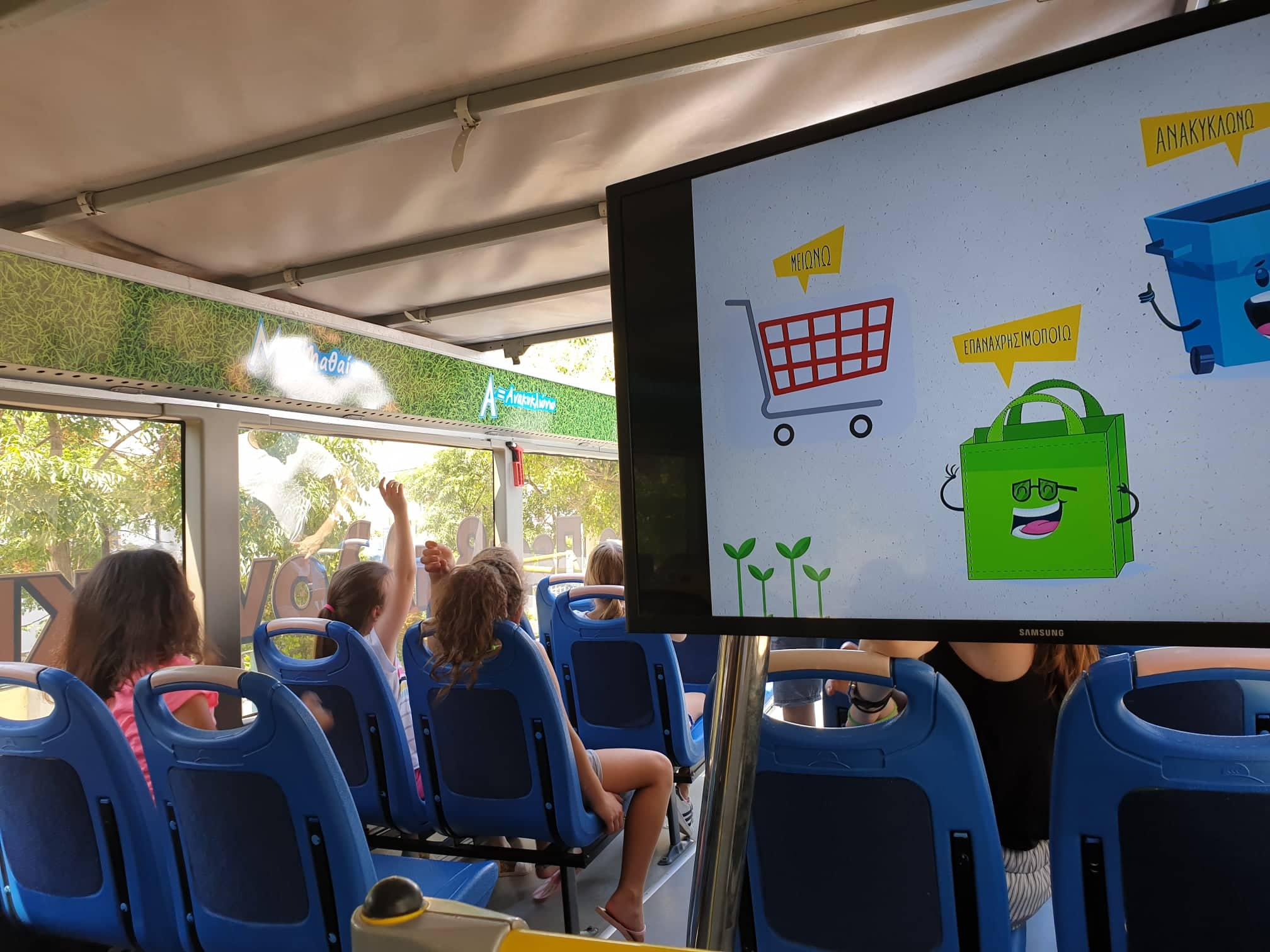 Καθημερινά, μικροί και μεγάλοι, πολίτες και φορείς επισκέπτονται το ««Κινητό Κέντρο Περιβαλλοντικής Εκπαίδευσης και Ανακύκλωσης»και εκπαιδεύονται μέσα από μία ωριαία παρουσίαση με προβολή βίντεο. Με το πέρας της θεωρητικής εκπαίδευσης, πραγματοποιείται το πρακτικό μέρος της εκπαιδευτικής διαδικασίας. Οι πολίτες ανακυκλώνουν στο αυτόματο μηχάνημα ανταποδοτικής ανακύκλωσης υψηλής τεχνολογίας (πλαστικές και μεταλλικές συσκευασίες), βιώνοντας έτσι στην πράξη τη διαδικασία της ανακύκλωσης, ενώ ταυτόχρονα μπαίνουν στην κλήρωση για μεγάλα έπαθλα: ACTION CAMERA, TABLET & ΗΧΕΙΑ BLUETOOTH.