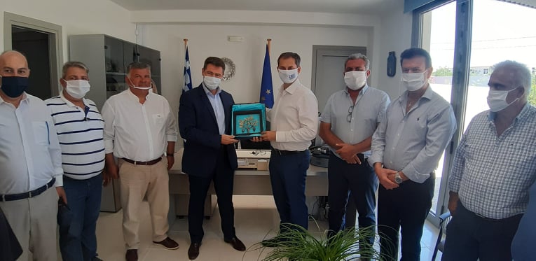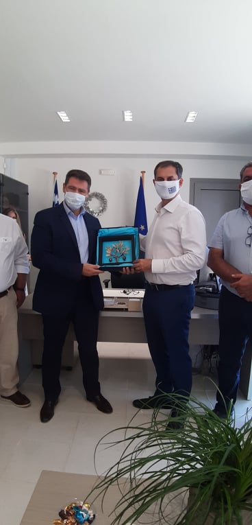 Ο Δήμαρχος, κ. Σέγκος έδωσε ένα συμβολικό δώρο στον Υπουργό, ένα πίνακα με μια ροδιά, με την ευχή για «μια όσο το δυνατόν περισσότερο παραγωγική σεζόν, καθώς και ασφαλή για όλους.»