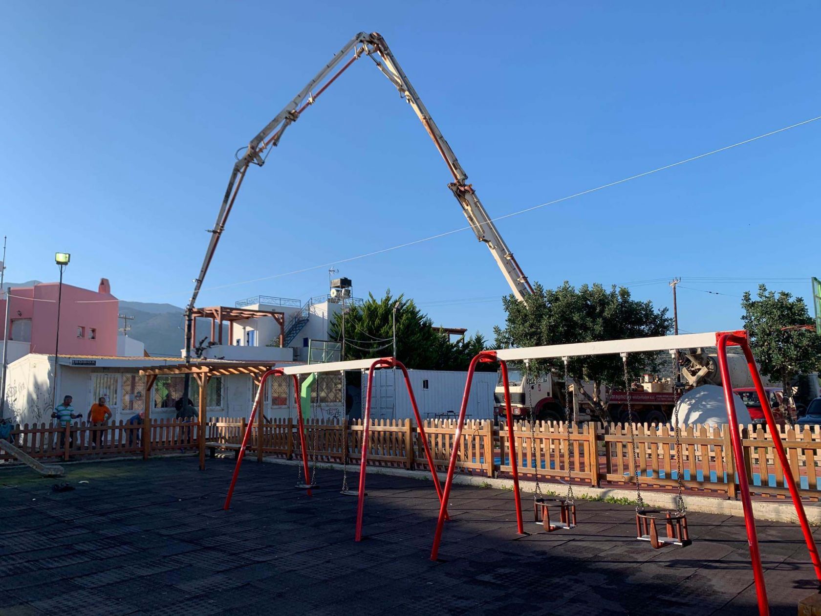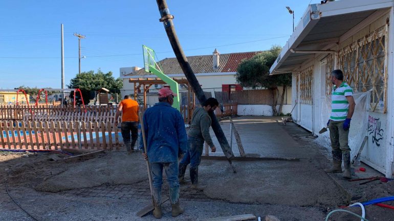 Τσιμεντώστρωση στον αύλειο χώρο του Δημοτικού σχολείου Σισίου