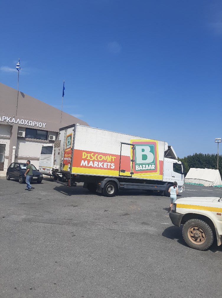 Eνα φορτηγό γεμάτο τρόφιμα και είδη πρώτης ανάγκης επιστρατεύτηκε απο τις κεντρικές αποθήκες των supermarket BΑΖΑΑR στη ΒΙΠΕ Ηρακλείου σε μια προσπάθεια να στηριχθούν οι εκατοντάδες σεισμόπληκτοι του Αρκαλοχωρίου.