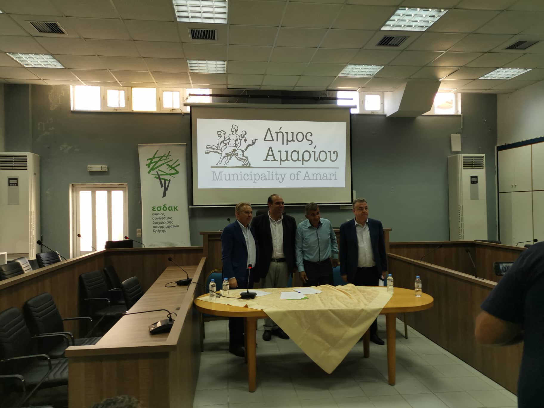 Από πλευράς ΕΣΔΑΚ, ο Πρόεδρός του κ. Μανόλης Κοκοσάλης , ο Αντιπρόεδρος και Δήμαρχος Αμαρίου κ. Παντελής Μουρτζανός, ο Διευθυντής της Τεχνικής υπηρεσίας που παρουσίασε και τη νέα μονάδα κ. Νίκος Στυλιανίδης, τα στελέχη της Τεχνικής υπηρεσίας κ. Μιχάλης Λασηθιωτάκης, Γιώργος Μανασάκης και Ιωάννα Γιακουμάκη καθώς και το στέλεχος της Οικονομικής υπηρεσίας κ. Μαρία Γερακιανάκη.
