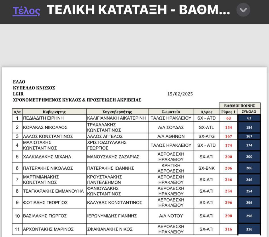 Η πολύπειρη κυβερνήτης (Κ1) Ειρήνη Πεδιαδίτη (ιατρός χειρουργός ουρολόγος-ανδρολόγος) και η Κατερίνα Καλλιγιαννάκη (χειρουργός οδοντίατρος) ως συγκυβερνήτης (Κ2) και χρόνια αθλήτρια σε υπερελαφρά αεροσκάφη έκοψαν πρώτες το νήμα και μάλιστα με εξαιρετικές επιδόσεις αφήνοντας πίσω τους άνδρες συναθλητές τους (ακολουθεί αναλυτικός πίνακας με τους χρόνους)