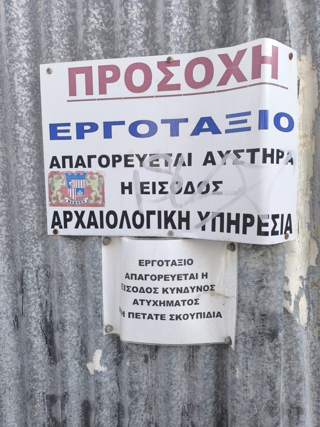 Δυο λαμαρίνες και μια ταμπέλα αποτελούν την σφραγίδα της αντίληψης των αρχαιολόγων του Ηρακλείου για την αισθητική τους στην πόλη.
