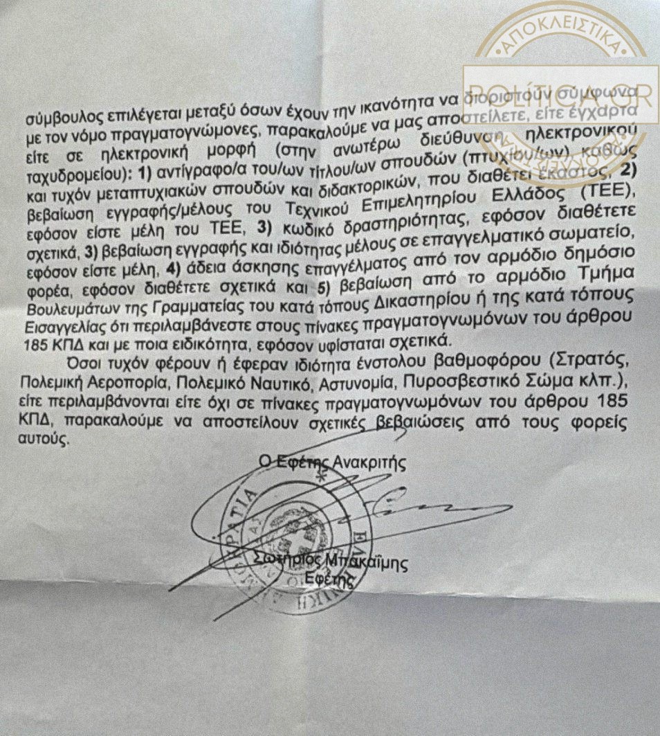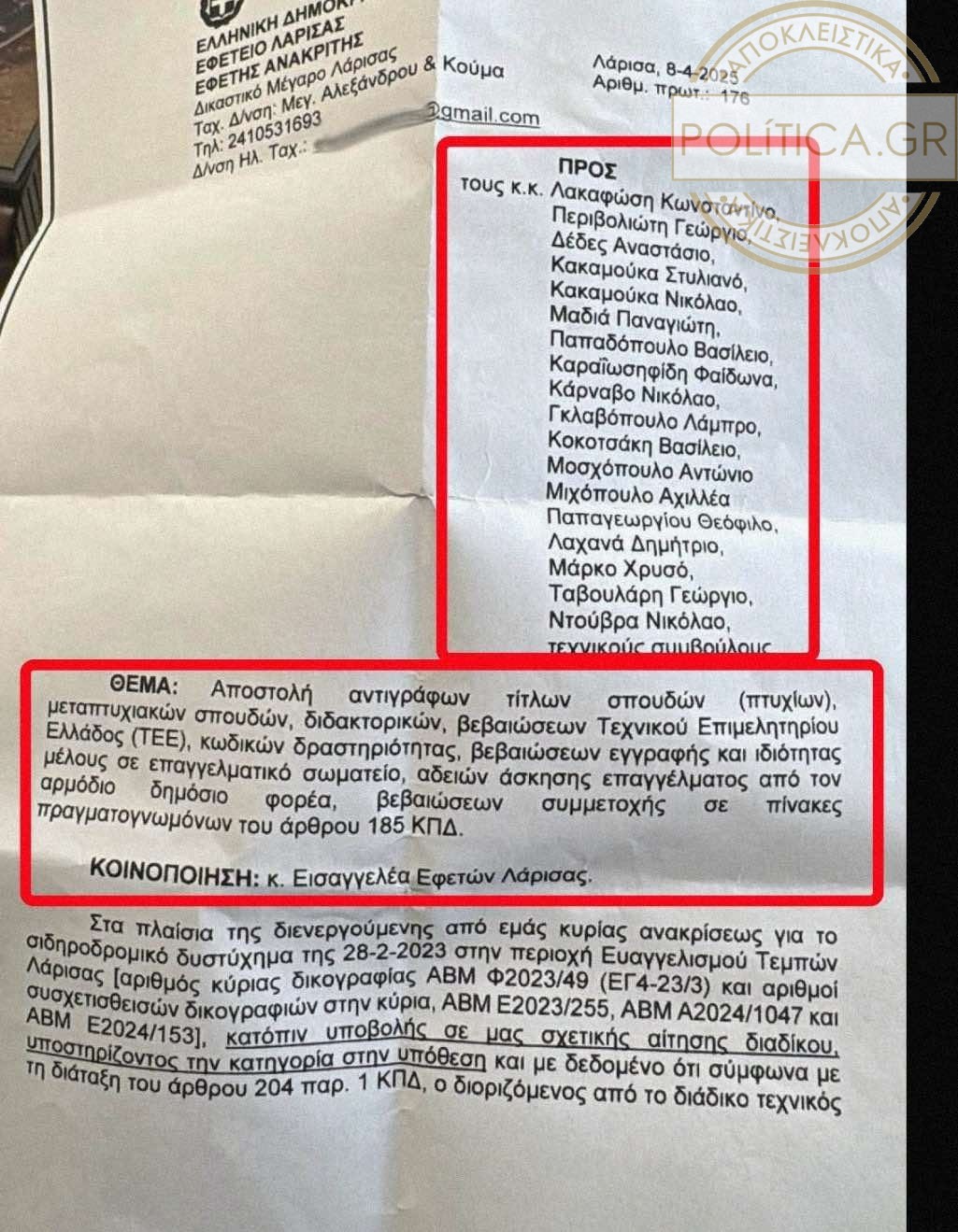 Κοκοτσάκης , Λακαφώσης , Χρυσός, Δέδες και άλλοι εμπλεκόμενοι , θα πρέπει να στείλουν πτυχία, τίτλους σπουδών, μεταπτυχιακά και τα συναφή.