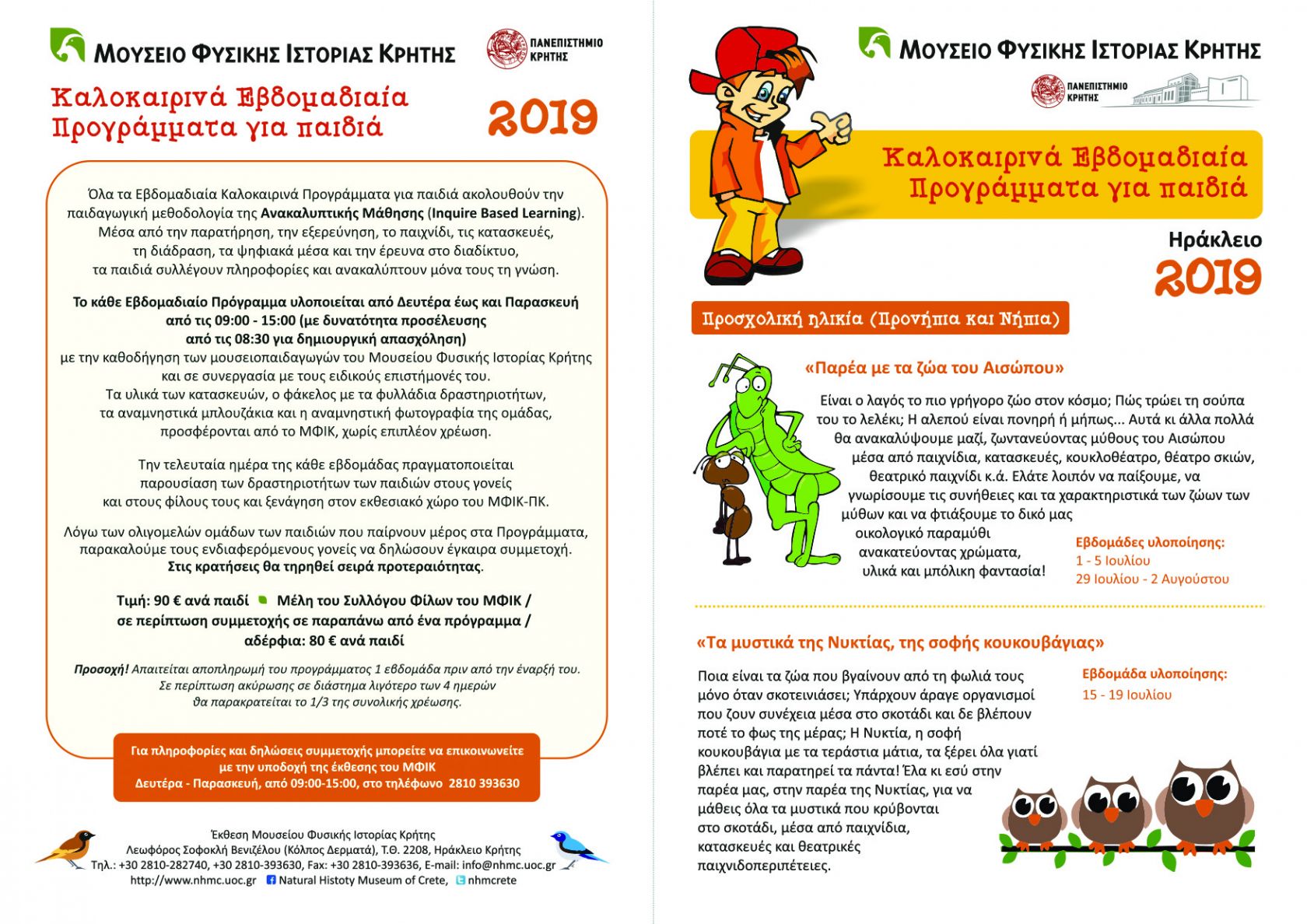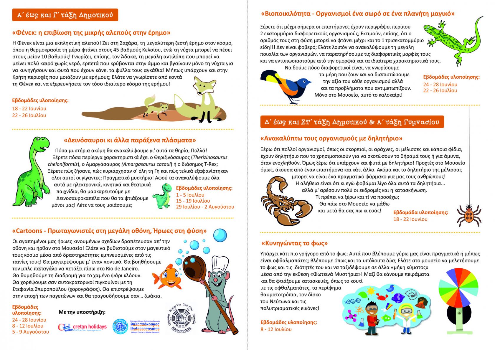 Δύο καλοκαιρινά εβδομαδιαία προγράμματα για παιδιά, από A΄ Δημοτικού έως Α Γυμνασίου, είναι έτοιμα να ξεκινήσουν τη Δευτέρα 15 Ιουλίου στο Μουσείο Φυσικής Ιστορίας.